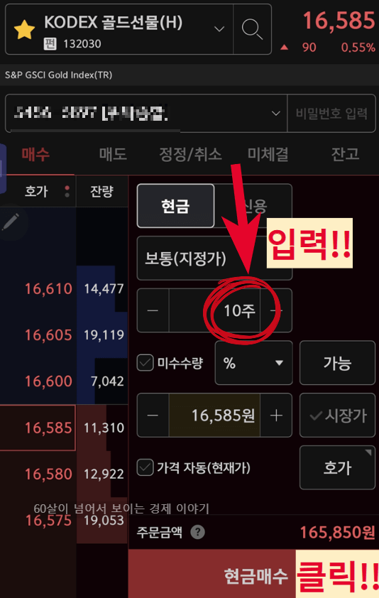 2. 증권 계좌 앱에서 금 ETF 매수방법(예시: KODEX 골드선물(H) 매수)